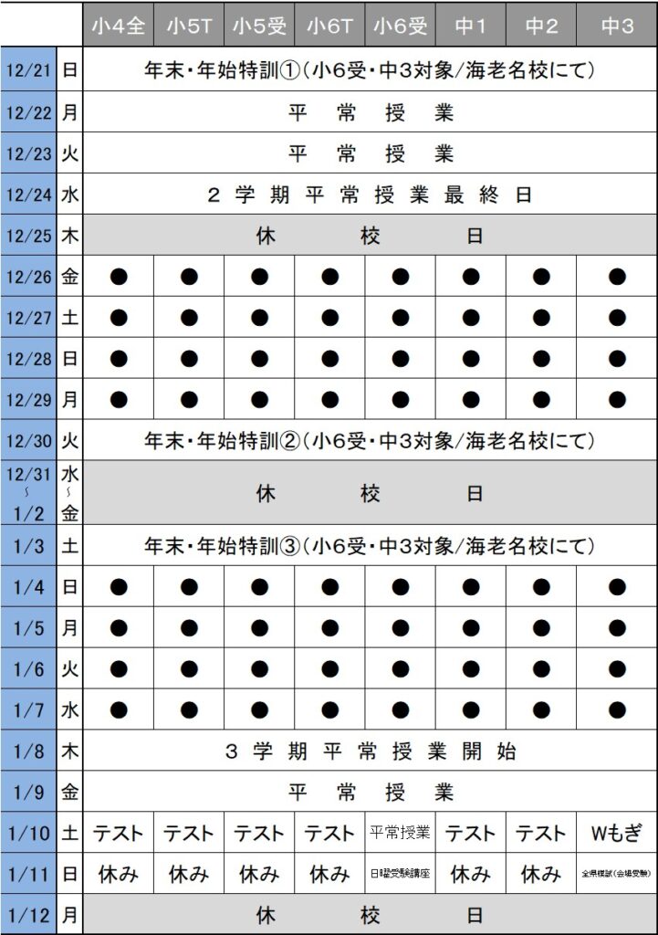 2025年冬期特訓講習日程